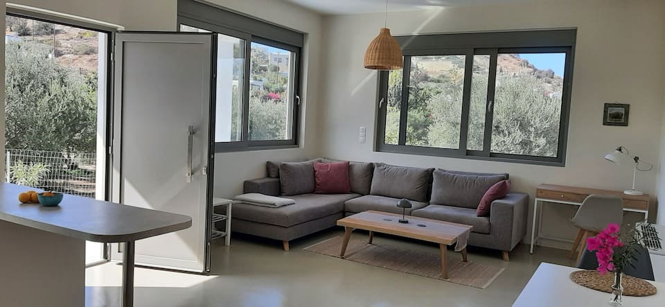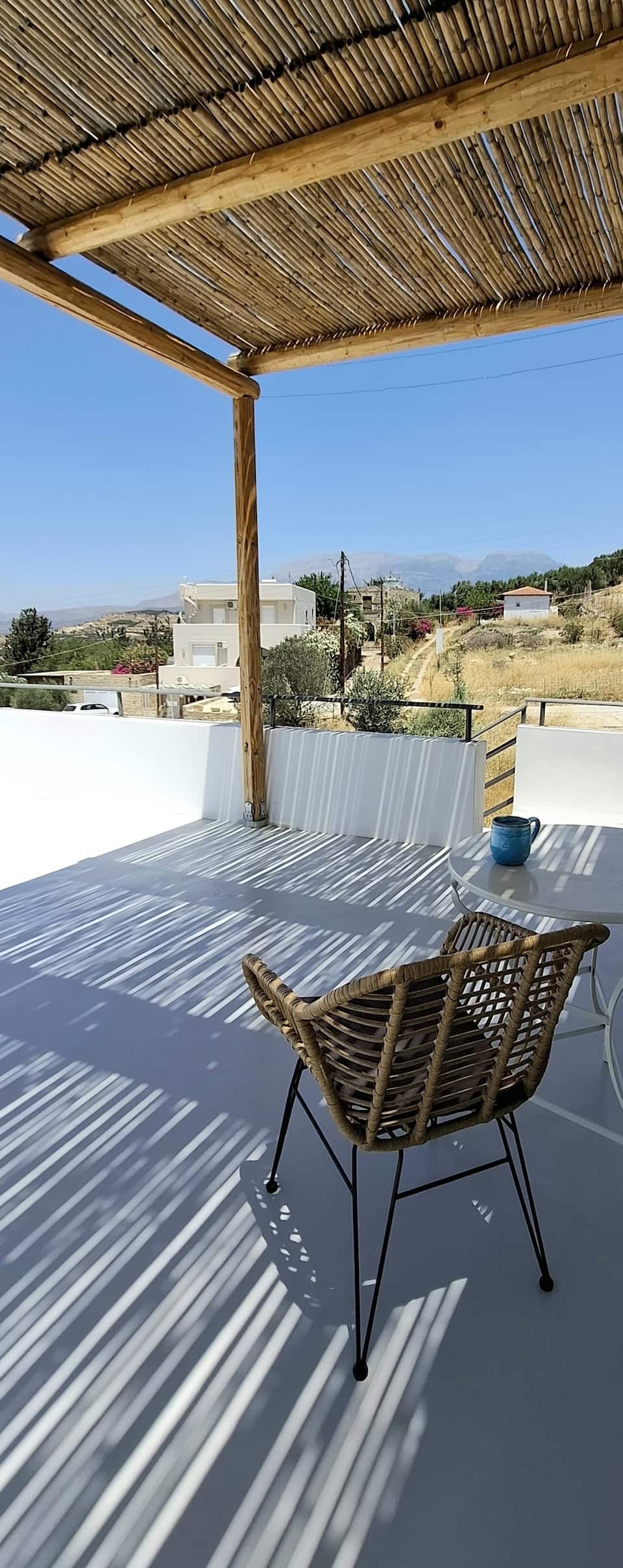 Eingebettet in einen großen, liebevoll gestalteten Garten liegt dieses eigenständige, private Haus im idyllischen Dorf Kamilari – ein Ort, der Ruhe, Natur und authentisches griechisches Leben vereint. Genießen Sie den herrlichen Bergblick von der Terrasse und erfrischen Sie sich an warmen Tagen unter der Außendusche.
