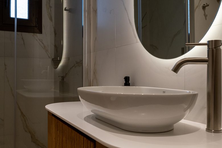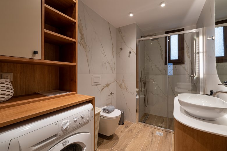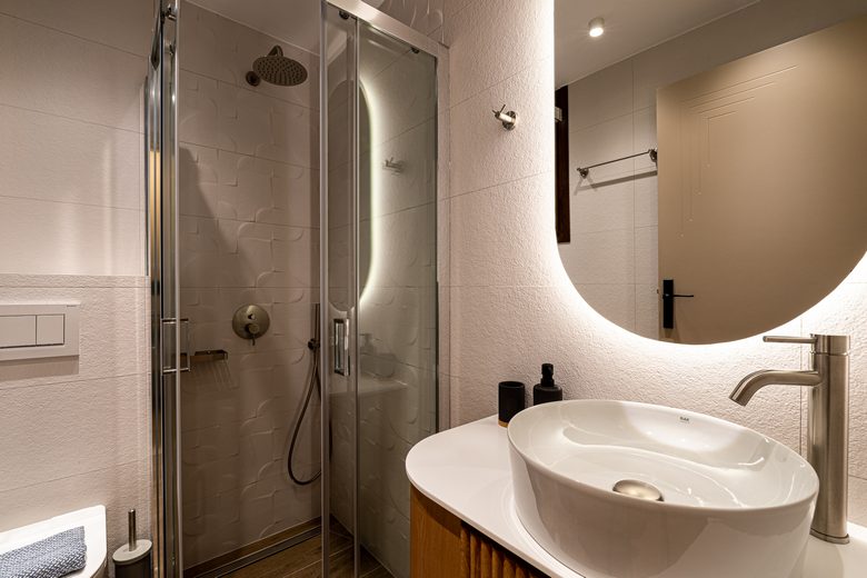 In jedem der drei Bäder finden Sie eingebaute Haartrockner.