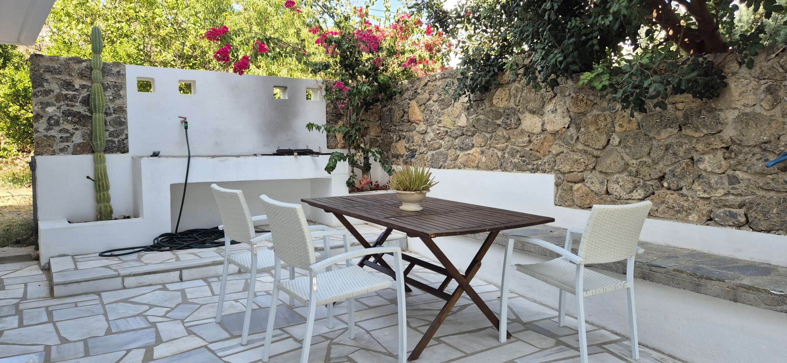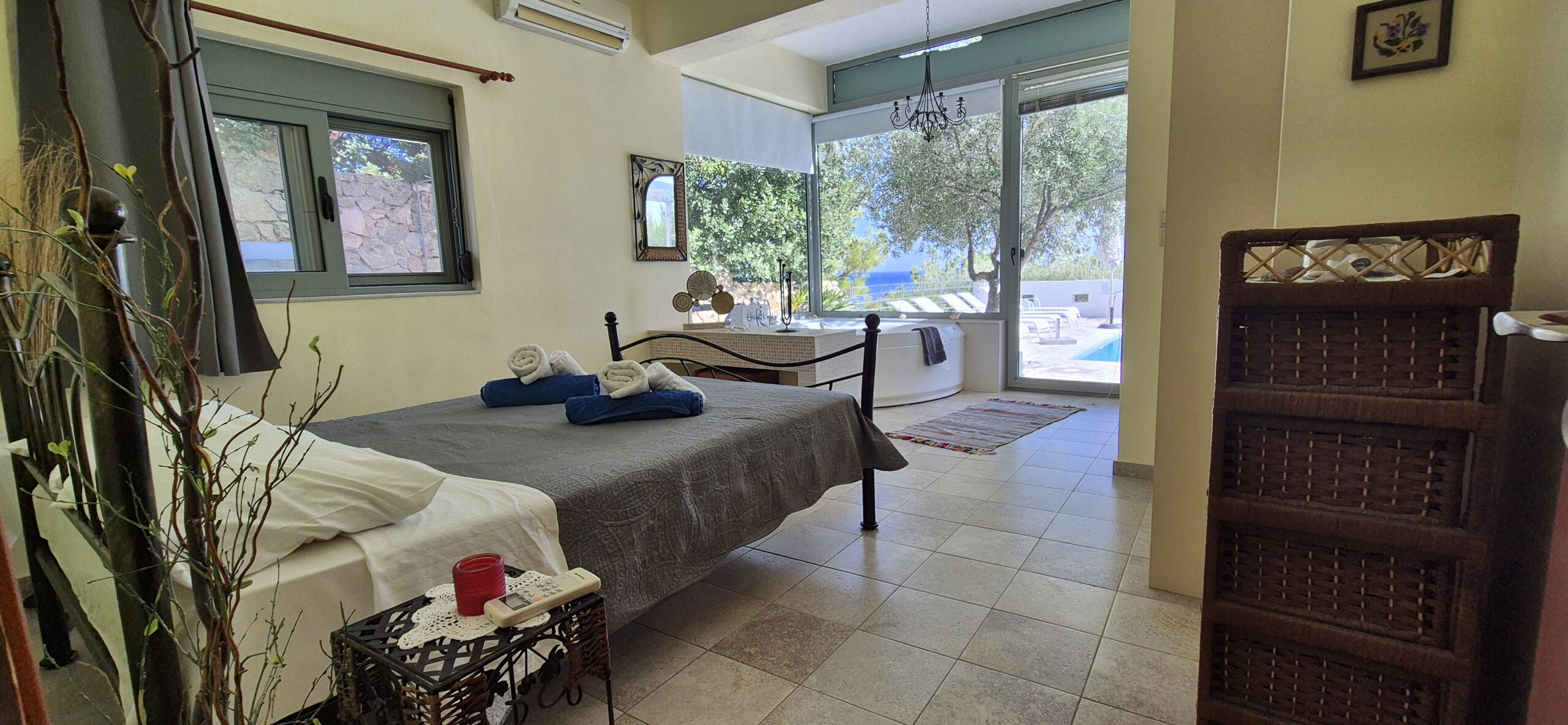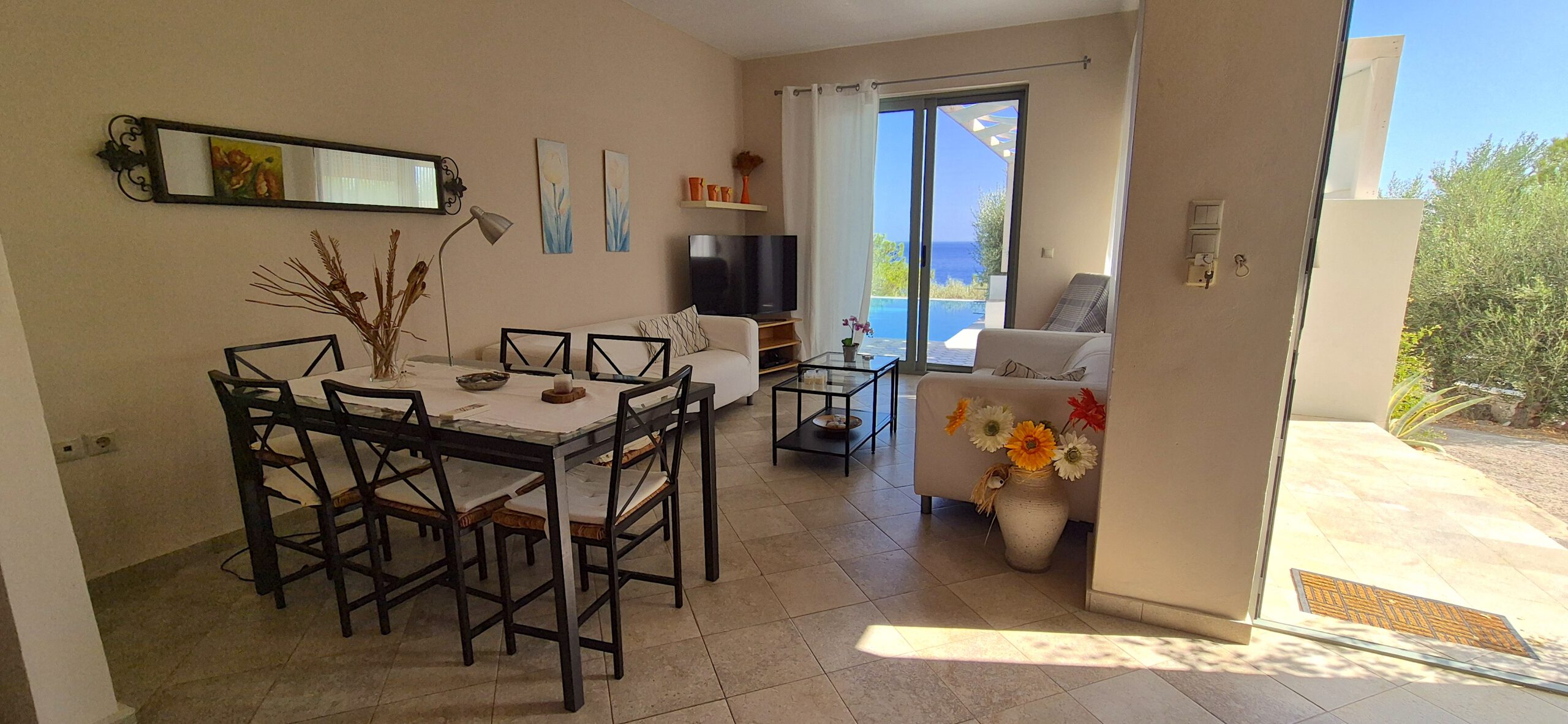 Ein privater Pool und ein traumhafter Meerblick sorgen für echtes Urlaubsgefühl. Vom Grundstück aus führt ein direkter Zugang zum Meer – einfach die Stufen hinunter und schon erreicht man das Wasser. Eine malerische Badebucht mit Strandtaverne ist zudem in nur fünf Gehminuten erreichbar und lädt zu entspannten Stunden am Meer ein.